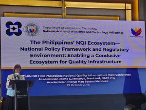 PASAY CITY, October 29, 2025 – The National Academy of Science and Technology Philippines (NAST PHL) participated in the 1st National Quality Infrastructure (NQI) Conference at the Sheraton Hotel Manila on October 29, 2025. The United Nations Industrial Development Organization (UNIDO) and the Department of Trade and Industry (DTI) organized the event to address how … Continue reading NAST Philippines Calls for Strengthening National Quality Infrastructure at First National Conference