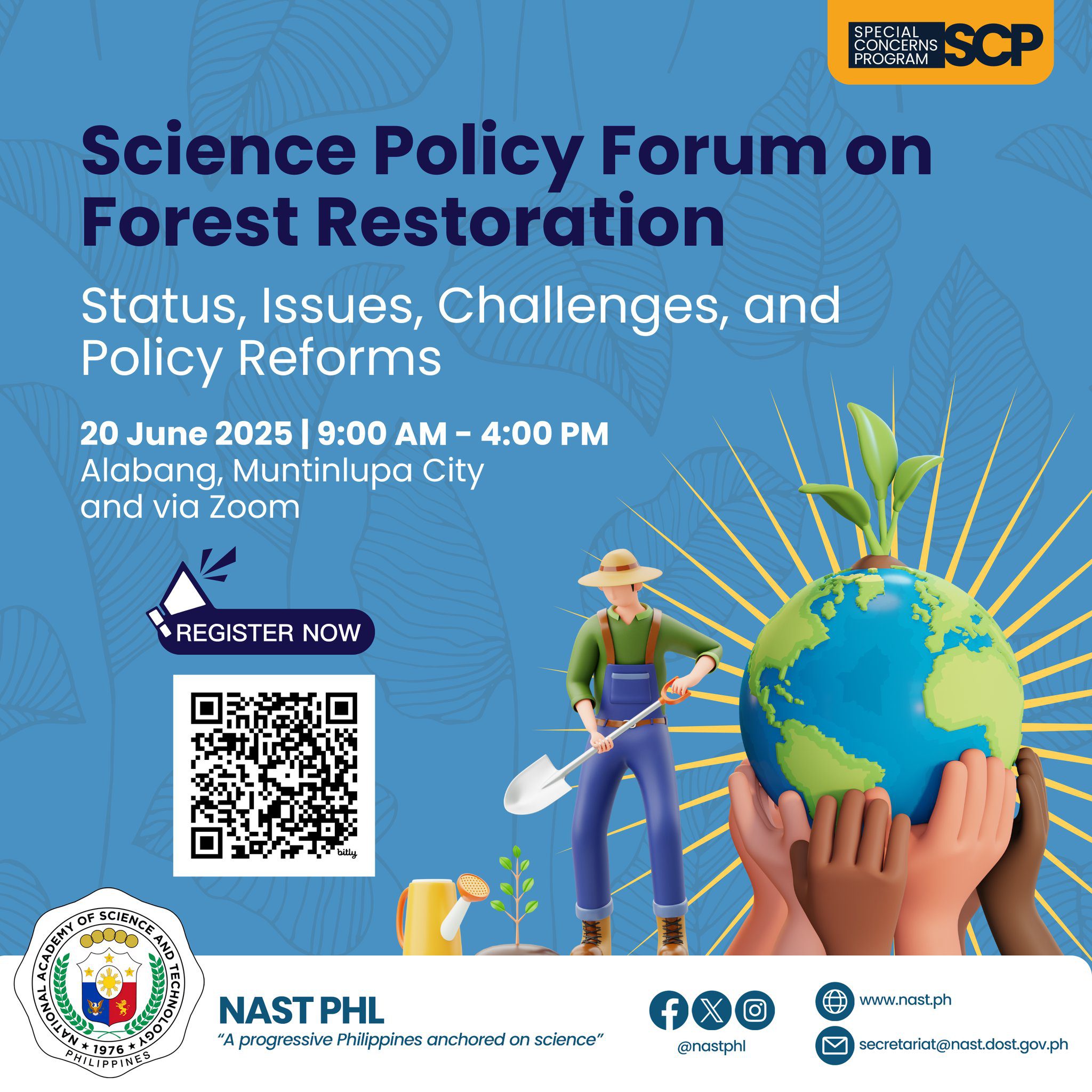 Through its advisory activities, NAST has been able to bring science and technology closer to the lives of the Filipino. Its series of information fora and roundtable discussions have encouraged public participation in open discussions of important and pressing issues in science and technology on a wide range of topics such as biotechnology, genetic engineering, intellectual property rights, information and communications technology, high performance computing, sustainable agriculture and waste management, water resource management among others.
